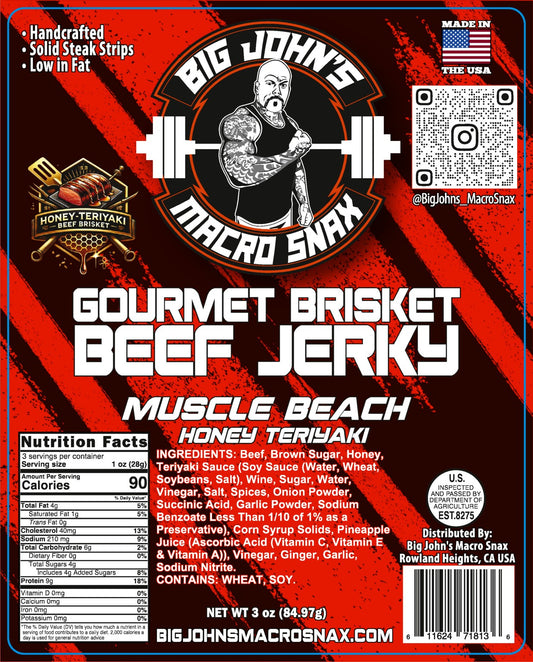 "Muscle Beach" Honey Teriyaki Brisket Beef Jerky - (3oz) High Protein Snack